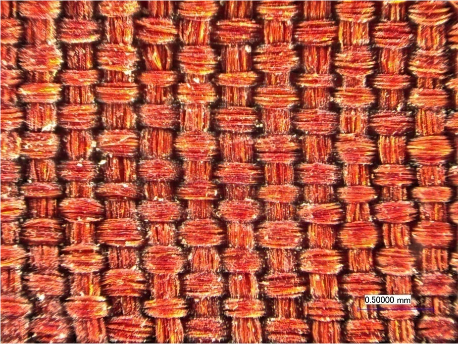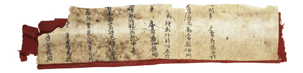 (b)MS03476はミイラにかぶせれていた紙として、これまでも何回も展示されている。用紙は唐時代の麻紙を基本としているが(a) 、一部にイネ科植物遺物が付着し、純粋な麻紙かどうかさらに分析する必要がある。また裏に張り付けられている赤色の布は、精巧な平織りの絹布である(b) 。今後、繊維の計測、色彩の分析などを行い、唐時代の織物、染色技術の解明が待たれる資料である。 戻る |